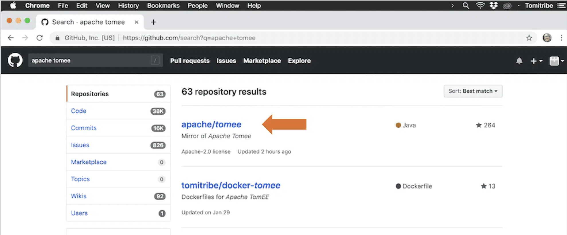 We want the main project, which is titled “apache/tomee”. Don’t worry about the other projects, they are not important to you at this point.