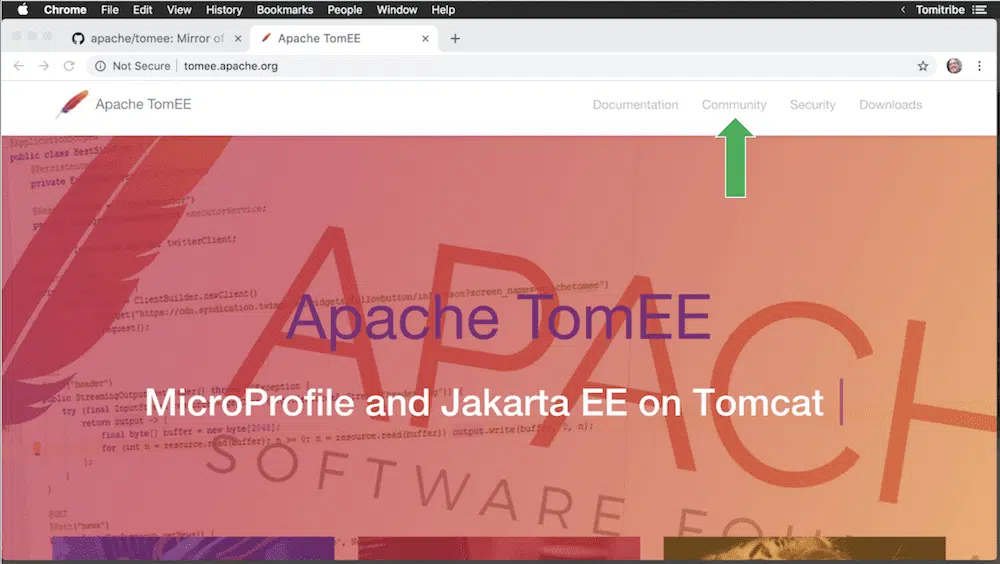 We’ve already written a tutorial on how to join the mailing lists so rather than repeat that here I’m going to show you how to find the TomEE Community page and open the “Contribution tips” where detailed instructions on joining the mailing list and introducing yourself, as well as some helpful advice, can be found.