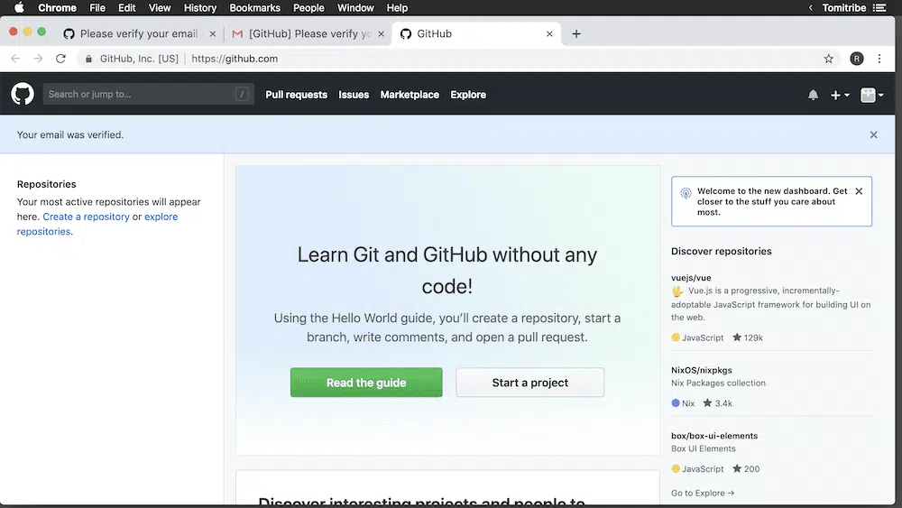 After following a couple of more steps you should see the following screen asking you to confirm your email address.