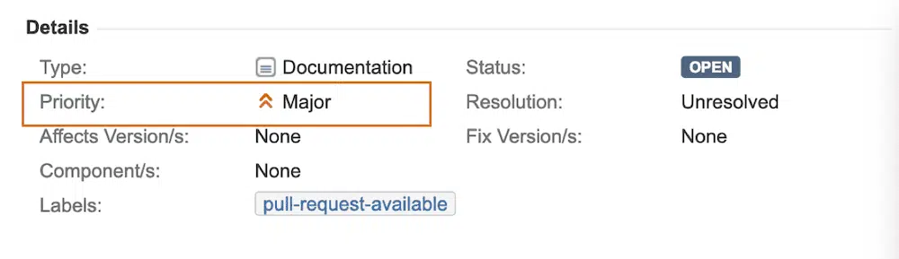 Triage, the process of prioritizing work, is important to open source projects. You want to know if the problem you are looking at breaks builds or is something far less serious. The following shows how the “Priority” of the JIRA issue is declared.
