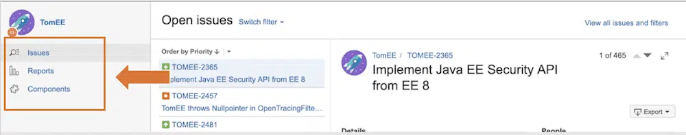 The Issues Page is the one we are primarily interested in at this time. It’s the page you should be looking at right now. It shows a listing of all the JIRA Issues for the TomEE project. Make sure the Issues Page is selected.