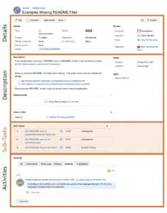 Sometimes it’s helpful to break an issue up into sub-tasks. Sub-tasks are used in volume with what are called Epics.