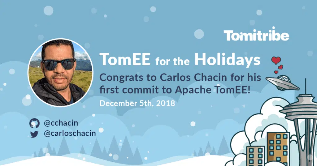 In this spirit, we in Tomitribe are dedicating our December to you in a campaign we’re calling “TomEE for the Holidays.” We want to help as many new people contribute to Apache TomEE as we possibly can. Not only that but when you do we want to celebrate your first contribution to TomEE by making you a personalized badge like the one below.